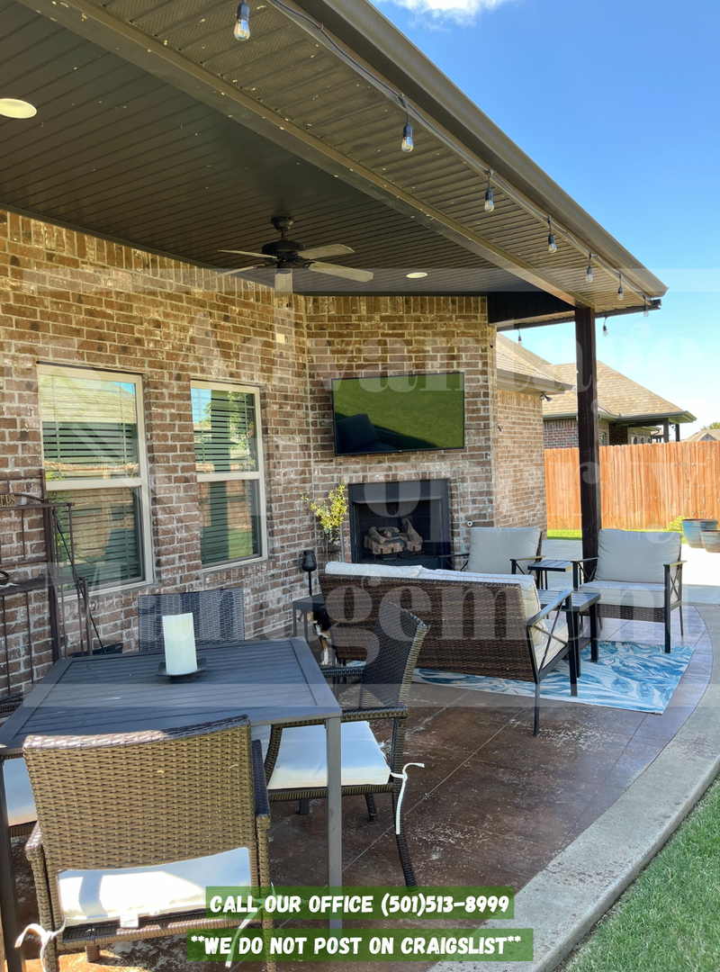 Enjoy open living spaces, a modern kitchen, and a private outdoor area complete with patio furniture and an outdoor TV — perfect for relaxing or entertaining.
